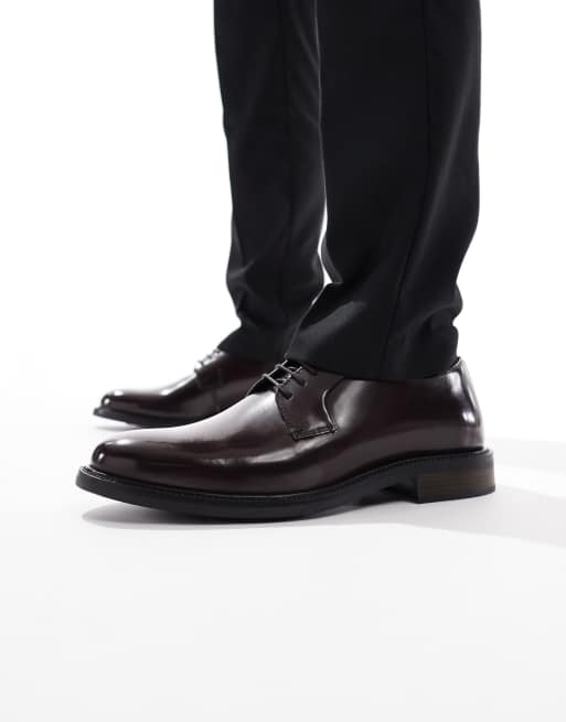 ASOS DESIGN – Derby-Schnürschuhe aus Leder in Burgunderrot