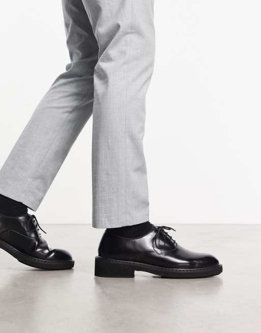 ASOS DESIGN – Derby-Schnürschuhe aus schwarzem Lackleder mit dicker Sohle