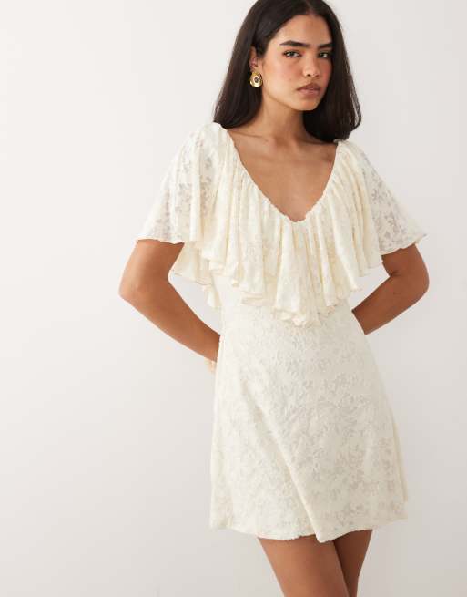 ASOS DESIGN – Devoré-Minikleid in Weiß mit gerüschten Flügelärmeln