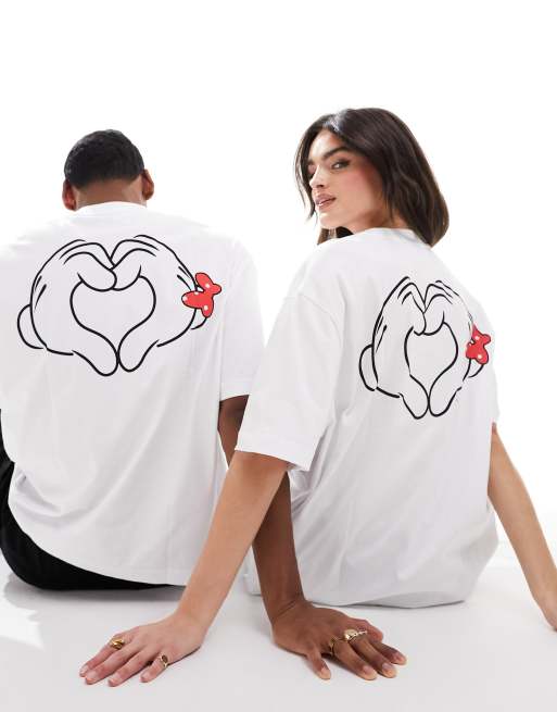 ASOS DESIGN – Disney – Übergroßes Unisex-T-Shirt in Weiß mit Mickey- und Minnie-Print und Handmotiv