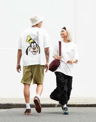 ASOS DESIGN – Disney – Unisex – Oversize-T-Shirt in Weiß mit Goofy-Prints