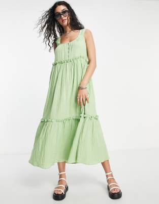 ASOS DESIGN – Doppellagiges, trapezförmiges, kurzes Maxi-Sommerkleid in Grün