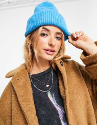 ASOS DESIGN – Doppelt aufgerollte, dicke Strickmütze in Blau