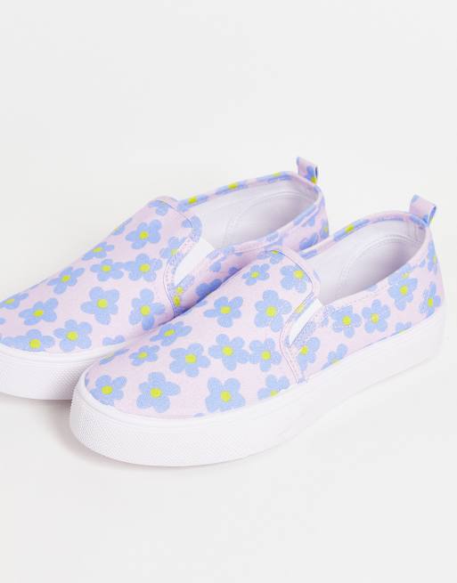 ASOS DESIGN – Dotty – Stoffschuhe zum Hineinschlüpfen mit mehrfarbigem Blumenmuster