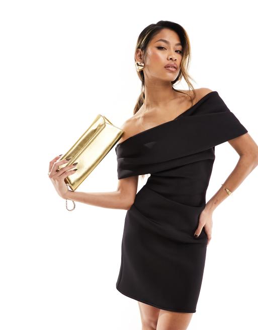 ASOS DESIGN – Drapiertes Bardot-Minikleid in Schwarz