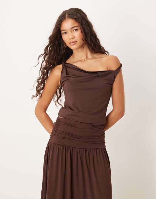 ASOS DESIGN – Drapiertes Tanktop in Schokobraun mit verdrehten Trägern