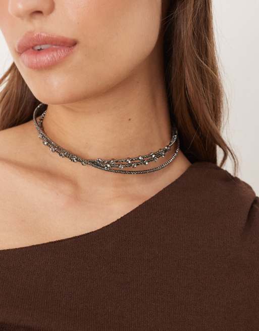 ASOS DESIGN – Dreireihige Choker-Halskette mit Kunstkristallen