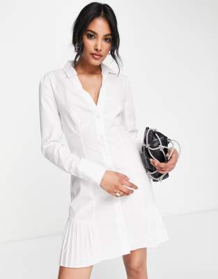 ASOS DESIGN – Durchgeknöpftes Mini-Hemdkleid aus Baumwolle mit plissiertem Saum in Weiß