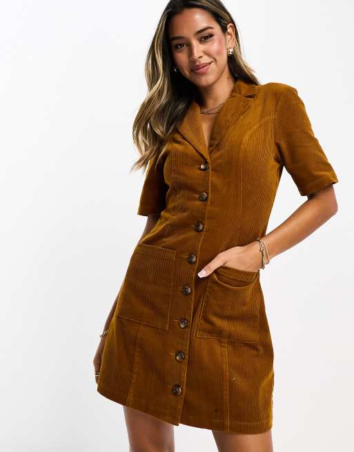 ASOS DESIGN – Durchgeknöpftes Minikleid in Tabakbraun aus Cord