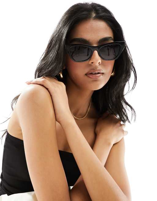 ASOS DESIGN – Eckige Katzenaugensonnenbrille in Schwarz