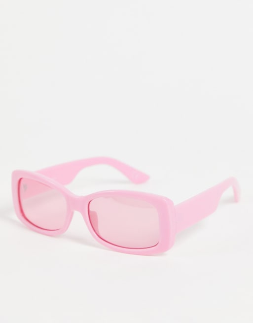 ASOS DESIGN – Eckige, mittelgroße Sonnenbrille mit eng anliegendem Rahmen in Pink - BPINK