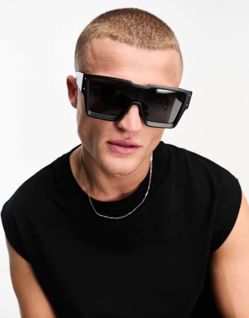 ASOS DESIGN – Eckige Oversize-Sonnenbrille in Mattschwarz mit getönten Gläsern