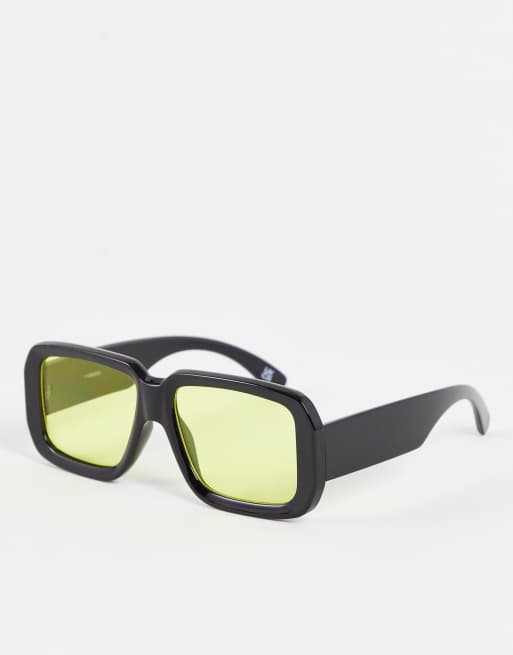 ASOS DESIGN – Eckige Oversize-Sonnenbrille in Schwarz mit bernsteinfarbenen Gläsern