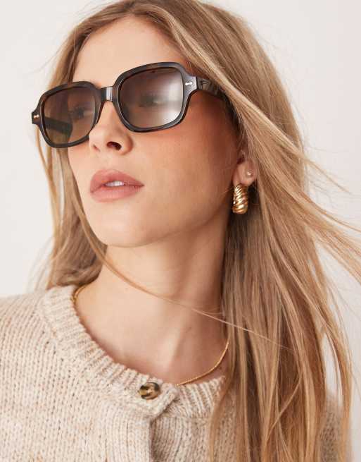ASOS DESIGN – Eckige Sonnenbrille in Schildplattoptik