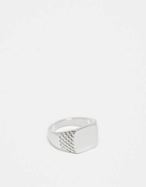 ASOS DESIGN – Eckiger Siegelring in Silberoptik mit seitlichen Prägungen