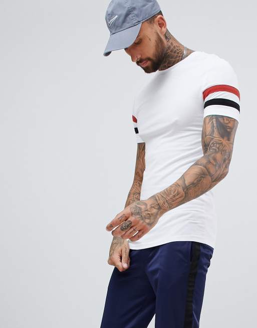 ASOS DESIGN – Elastisches, weißes Muskelshirt mit Ärmelstreifen
