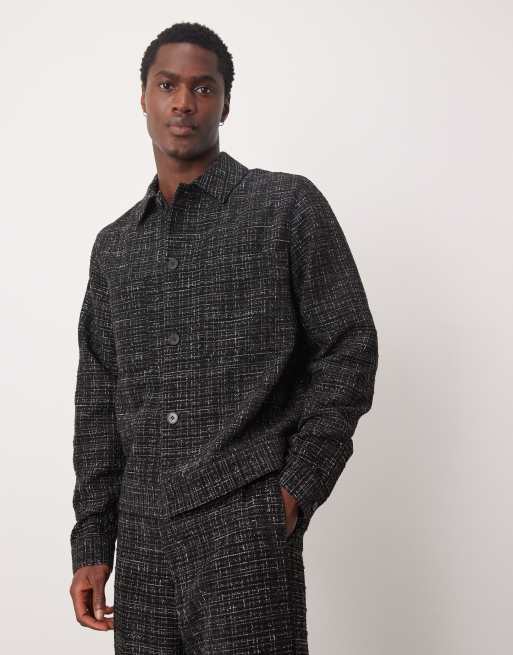 ASOS DESIGN – Elegante Bouclé-Hemdjacke in glitzerndem Schwarz, Kombiteil