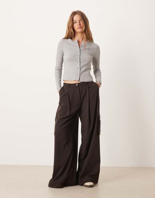 ASOS DESIGN – Elegante Cargo-Hose in Schokoladenbraun mit weitem Bein