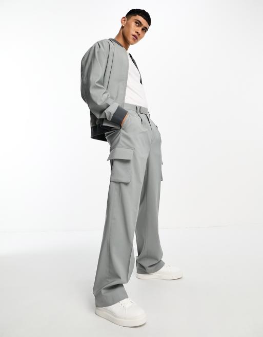 ASOS DESIGN – Elegante Cargohose in Grau mit weitem Schnitt und Taschendetails, Kombiteil