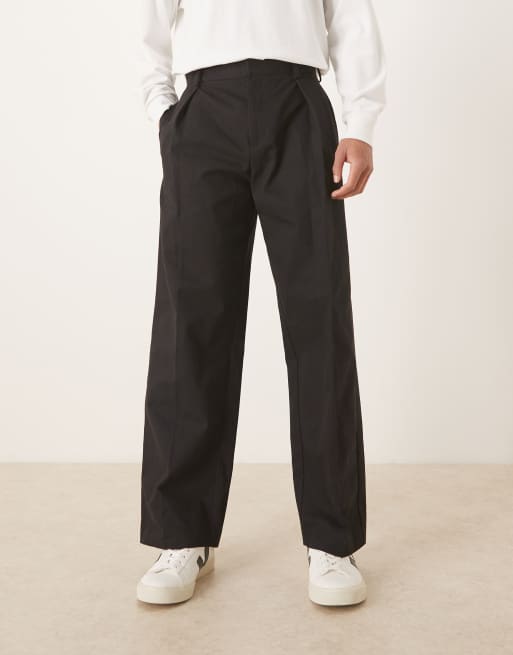 ASOS DESIGN – Elegante Hose aus 100% Baumwolle in Schwarz mit weitem Bein und tiefen Bundfalten