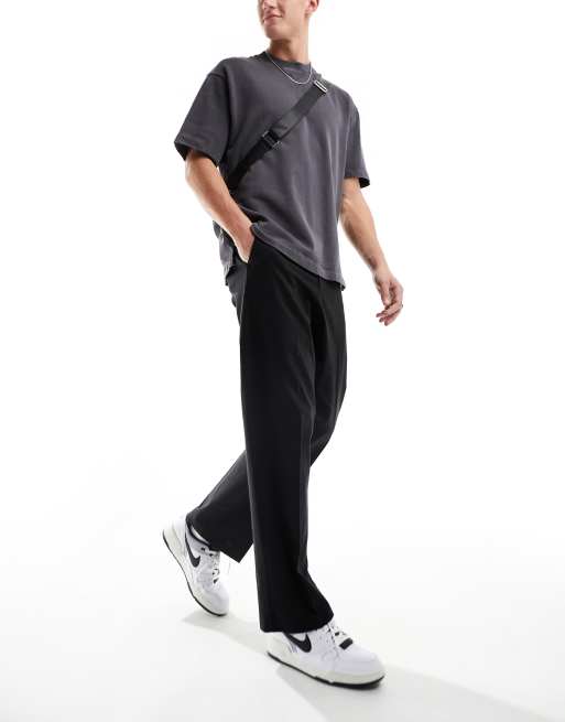 ASOS DESIGN – Elegante Hose aus Leinenmix in Schwarz mit weitem Bein