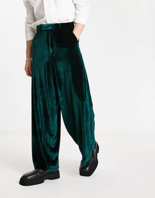 ASOS DESIGN – Elegante Hose aus Samt in Grün mit sehr weitem Bein
