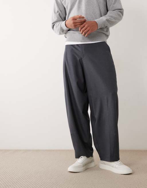 ASOS DESIGN – Elegante Hose im Denim-Look in Dunkelblau mit abgerundetem Beinschnitt