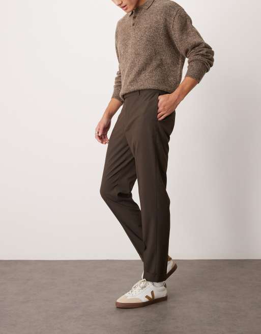 ASOS DESIGN – Elegante Hose in Braun mit schmal zulaufendem Bein und Mikrostruktur
