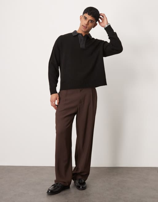 ASOS DESIGN – Elegante Hose in Braun mit weitem Bein