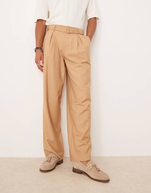 ASOS DESIGN – Elegante Hose in Kamelbeige mit Gürtel, weitem Bein und Bundfalte