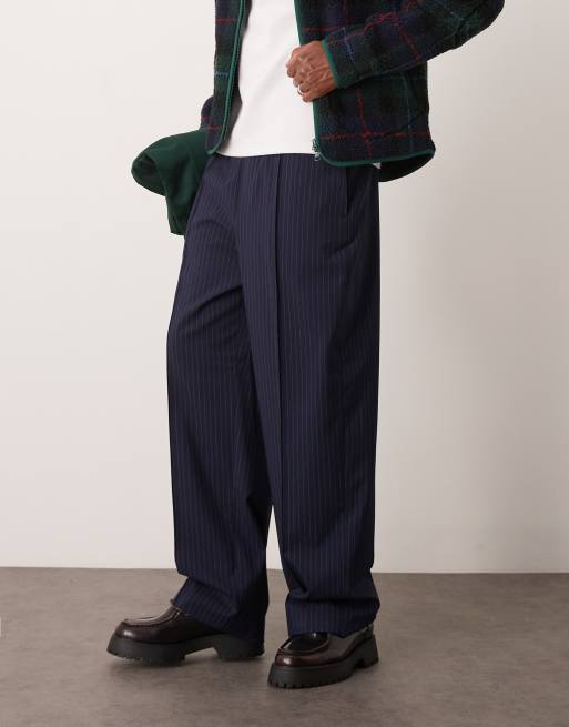 ASOS DESIGN – Elegante Hose in Marineblau mit weitem Bein und Nadelstreifen