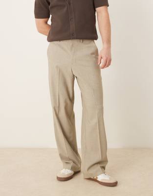 ASOS DESIGN – Elegante Hose in meliertem Hellgrau mit weitem Bein