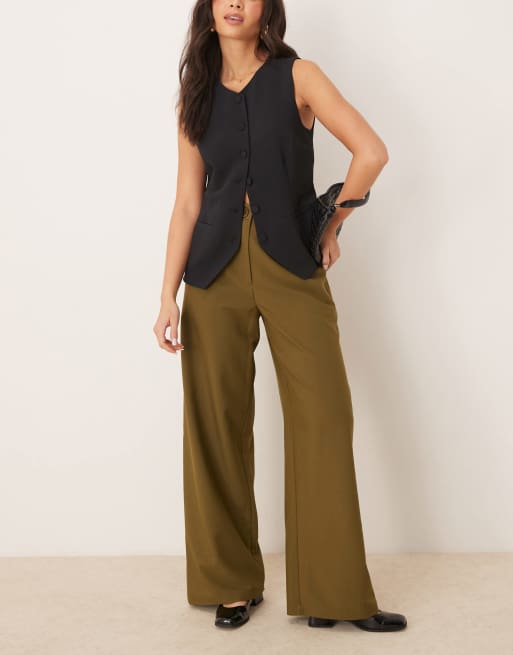 ASOS DESIGN – Elegante Hose in Olivgrün mit lockerem, geradem Schnitt