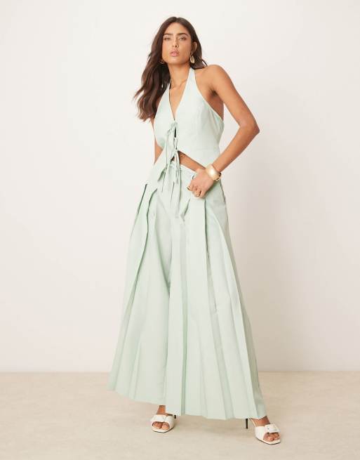 ASOS DESIGN – Elegante Hose in Pistaziengrün mit besonders weitem Bein und Bundfalten, Kombiteil