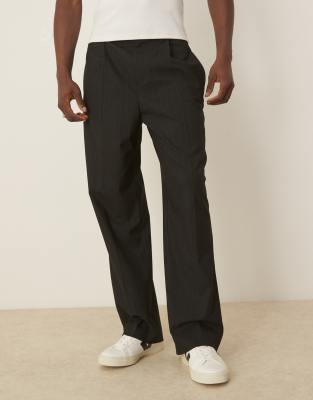 ASOS DESIGN – Elegante Hose in Schwarz mit weitem Bein, Nadelstreifen und elastischem Bund, Kombiteil