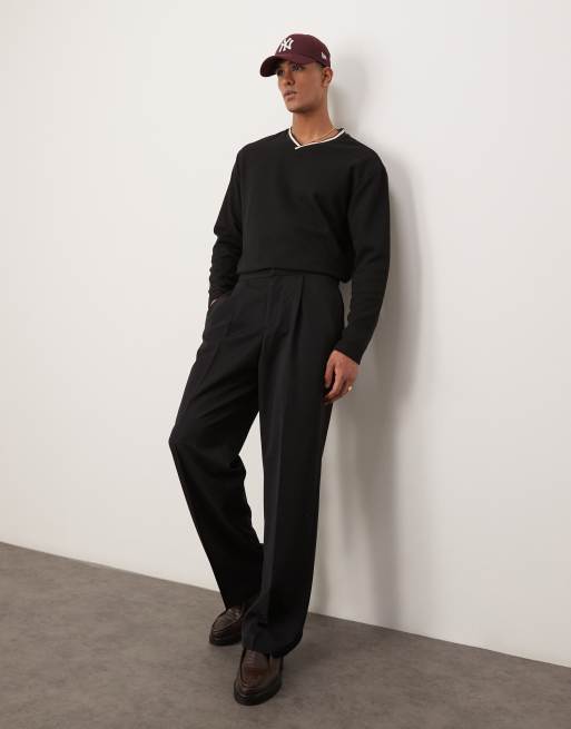 ASOS DESIGN – Elegante Hose in Schwarz mit weitem Bein und elastischem Bund