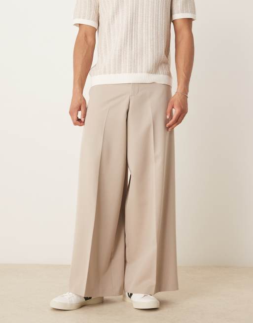 ASOS DESIGN – Elegante Hose in Stein mit extrem weitem Bein und Bundfalte vorne