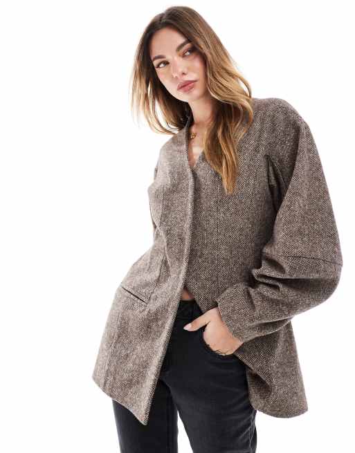 ASOS DESIGN – Elegante, kragenlose Jacke in Braun mit Kokon-Ärmeln