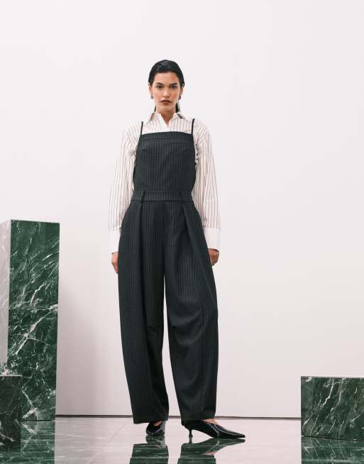 ASOS DESIGN – Elegante Latzhose in Schwarz mit Nadelstreifen und tiefem Rückenausschnitt