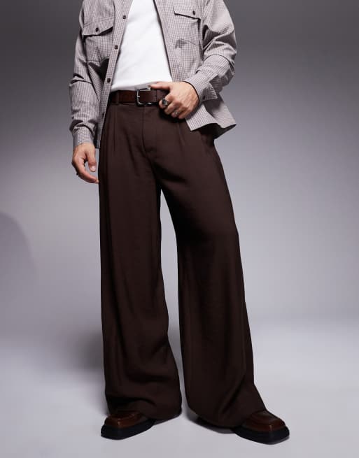 ASOS DESIGN – Elegante, lockere Hose in Braun mit weitem Bein und Bundfalten vorn