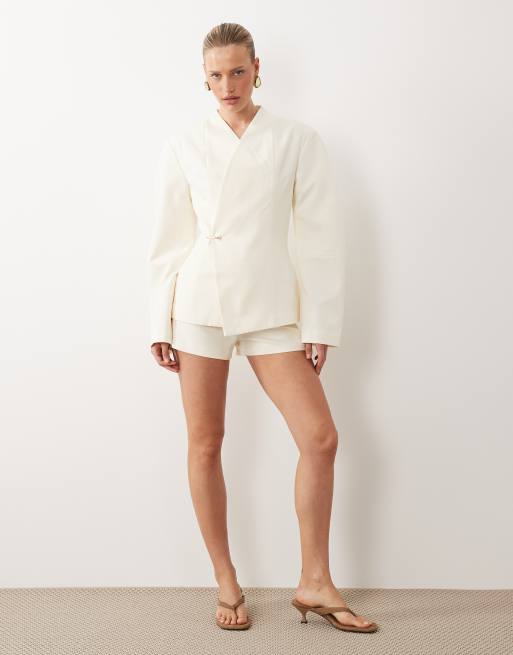 ASOS DESIGN – Elegante Mikro-Shorts in Cremeweiß, Kombiteil