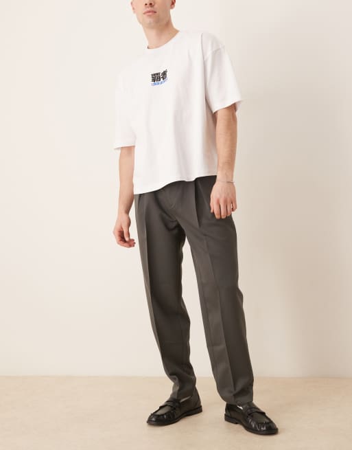 ASOS DESIGN – Elegante Oversize-Schlaghose in Anthrazit mit Bundfalte