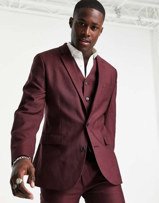 ASOS DESIGN – Elegante Oxford-Anzugjacke mit engem Schnitt in Burgunderrot
