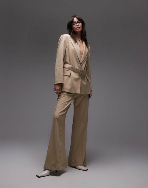 ASOS DESIGN – Elegante Schlaghose in Kamelbraun, Kombiteil