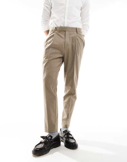 ASOS DESIGN – Elegante, schmal zulaufende Hose aus hochwertigem Material in Steinbeige meliert
