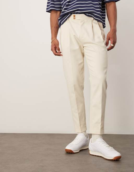 ASOS DESIGN – Elegante, schmal zulaufende Hose in Beige mit sichtbaren Knöpfen
