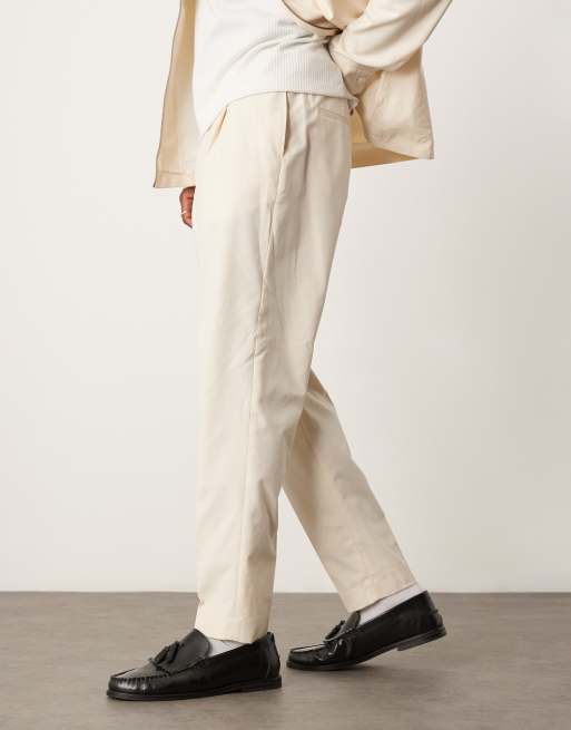 ASOS DESIGN – Elegante, schmal zulaufende Hose in Creme mit elastischem Bund, Kombiteil