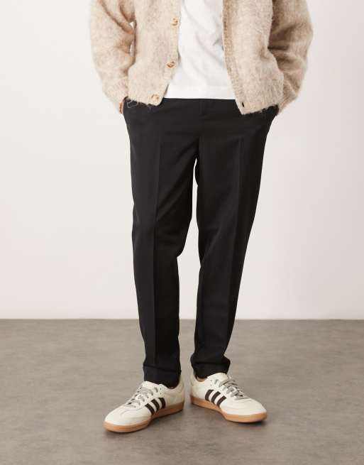 ASOS DESIGN – Elegante, schmal zulaufende Hose in Schwarz mit Umschlag und elastischem Bund