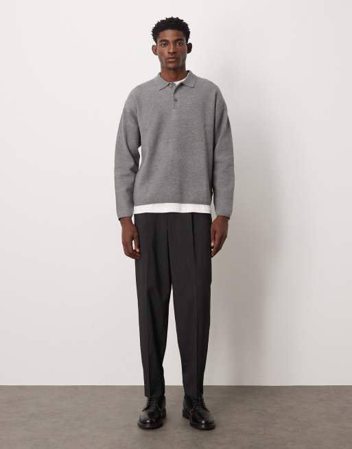 ASOS DESIGN – Elegante, schmal zulaufende Oversize-Hose in Anthrazit mit Nadelstreifen und Bügelfalten