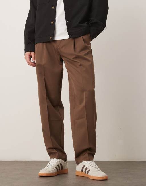 ASOS DESIGN – Elegante, schmal zulaufende Oversize-Hose in Braun mit Doppel-Bundfalten